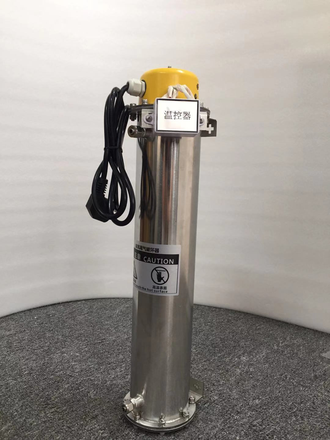 尾氣破壞器設計為加熱型。設備全自動運行,采用雙層不銹鋼保護。初次投資和運行費用均底于活性炭催化式、接觸氧化式。尾氣進入反應室后,臭氧分子在通過加熱催化器時得以分解。
